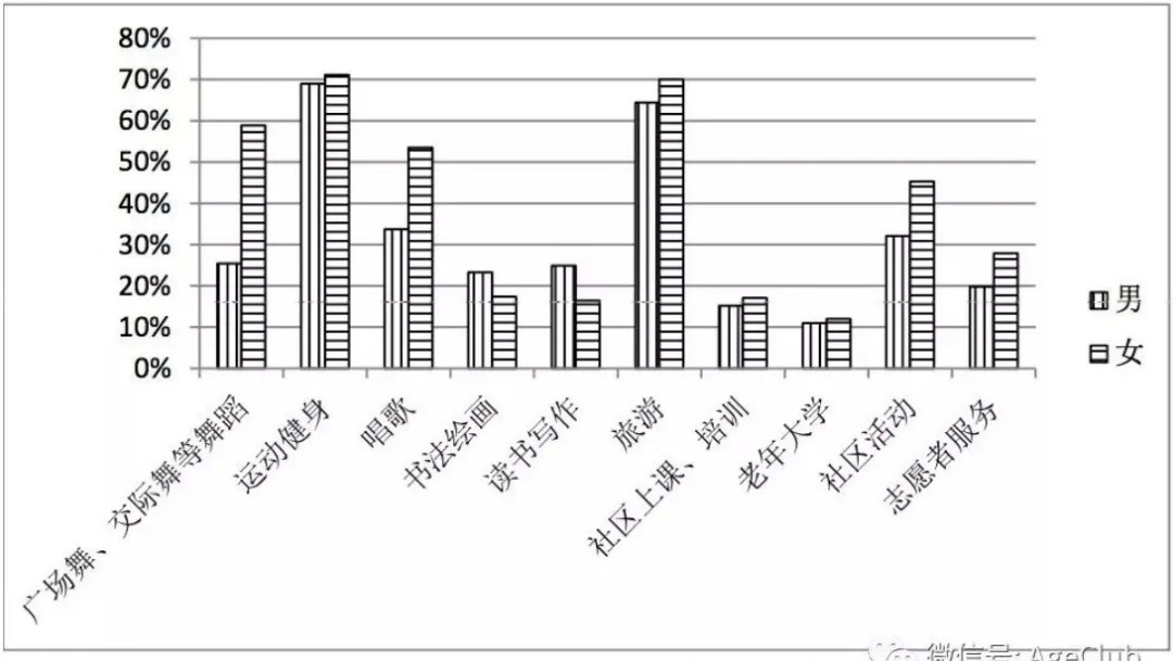 根据腾讯去年对八个城市数万中老年的调研统计数据,中老年人最广泛参与的社会活动是运动健身和旅游,分别有 70.1%和 67.4%的中老年人参与过,广场舞排在第三位。