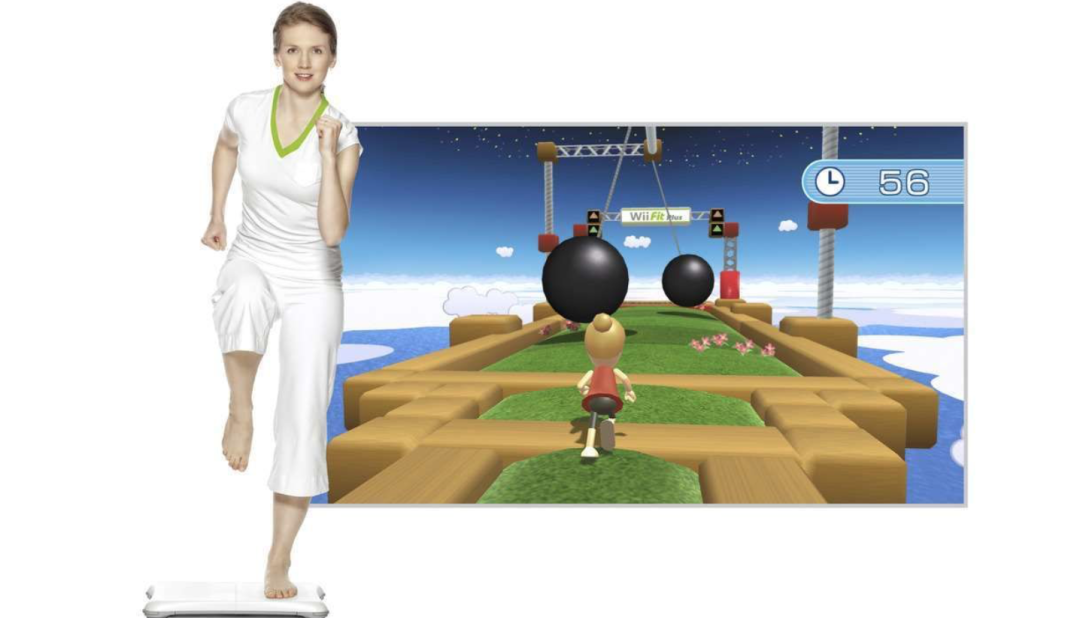 与Switch的《健身环大冒险》在年轻群体中流行类似,中老年也有他们喜爱的趣味性健身类游戏,比如《Wii Fit》,通过一块 Wii 平衡板,用户可以体验瑜伽、俯卧撑、呼啦圈、体操、足球等四十多种健身游戏。平衡板中有压力传感器,玩家还可以借助它来监测自己的体重。