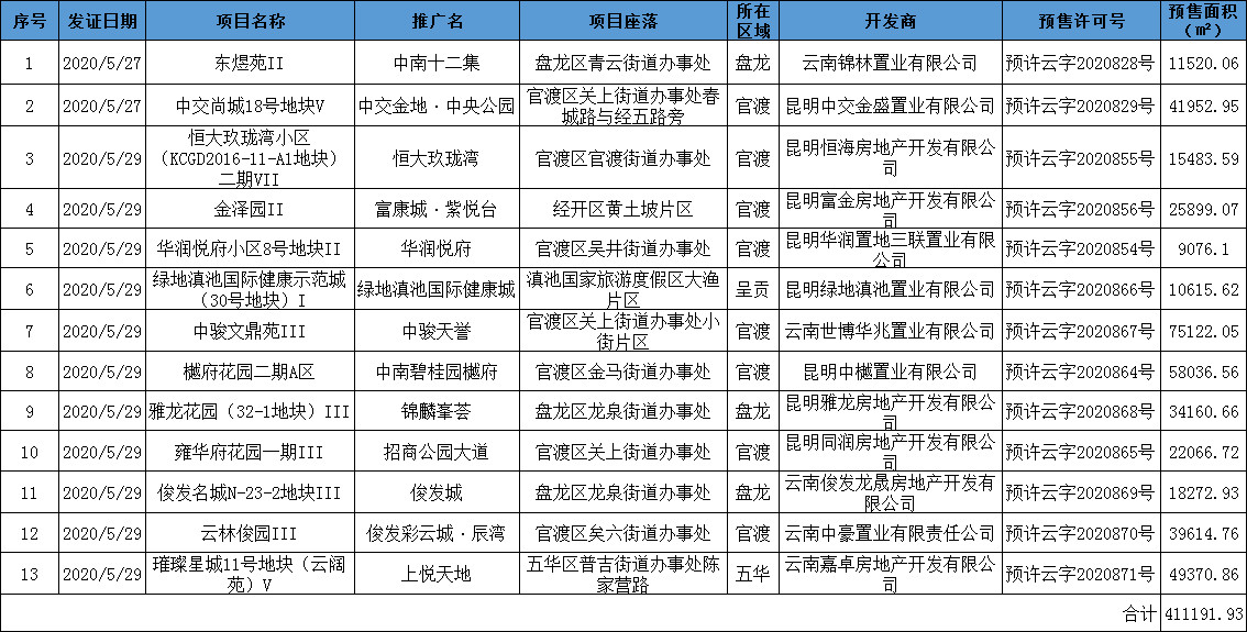 据昆明市房产信息网和呈贡房产信息网数据统计,上周昆明有13项目获得13张预售证,新增预售面积约41万方。与前一周14项目拿证、48万方的预售增量相比,新增预售面积环比下跌了15%。