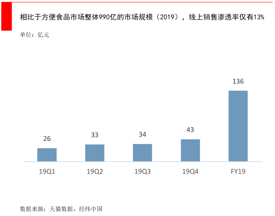 方便食品线上化率仅有13%,疫情会加速这一进程;