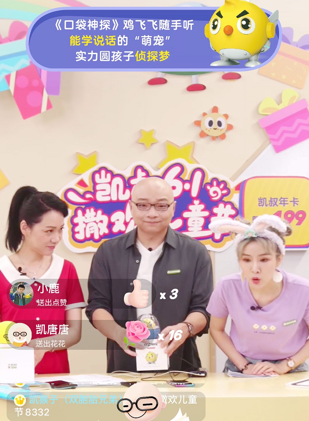 “撒欢奔跑啦啦啦,放肆大笑哈哈哈。甩掉唠叨和烦恼,今天的我最重要……”一曲欢快的歌舞表演拉开了儿童节凯叔直播的序幕。据了解,“凯叔讲故事”不仅讲故事、做课程、出图书、生产实体商品,还基于原创内容创作了大量儿童歌曲,直播开场歌曲《撒欢》就是为六一创作。可见,为陪娃过节,凯叔做了精心准备,不仅参演乐队歌舞、《巴巴爸爸》精彩贯口、即兴演绎《凯叔·西游记》精彩片段,还邀请知名主持人周群,一起陪娃撒欢过节。很多孩子在评论区留言,“从早上7点就一直期盼见到凯叔,这是儿童节最期待的事情。”
