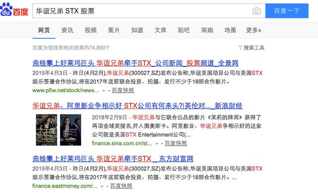 “2014年4月1日,华谊兄弟公告称,华谊美国公司将与美国STX合作,在2017年底之前联合投资、拍摄、发行不少于18部合作影片……”