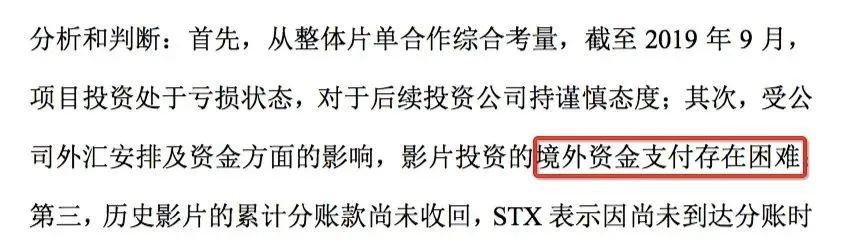 这就意味着,若华谊兄弟没有按照协议完成对STX最后一部影片的投资,就无法收回已有的1746万美元票房分账。但由于之前投资项目整体亏损的状况,使得华谊对STX的继续投资充满了不确定性。