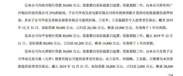 根据华谊兄弟对深交所的问询回复公告可知,截止2019年12月31日,华谊兄弟有息债务总额高达34.4亿元,其中短期借款及一年内到期的长期负债总额为27.54亿元,占总体债务总额的80%以上。