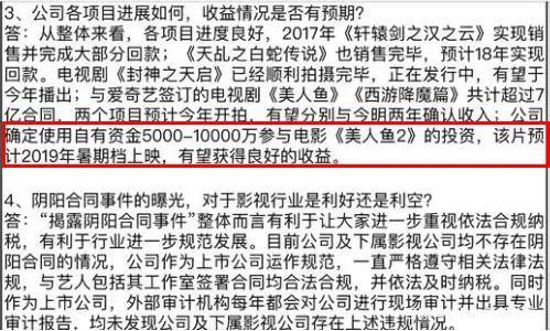 新文化回复投资者问题提到《美人鱼2》上映档期