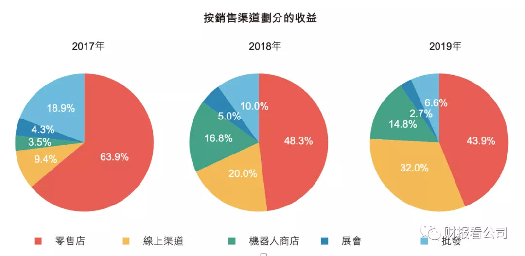 可以看到,线上渠道的增长最为迅速,而零售店依然是其销售量最大的渠道。