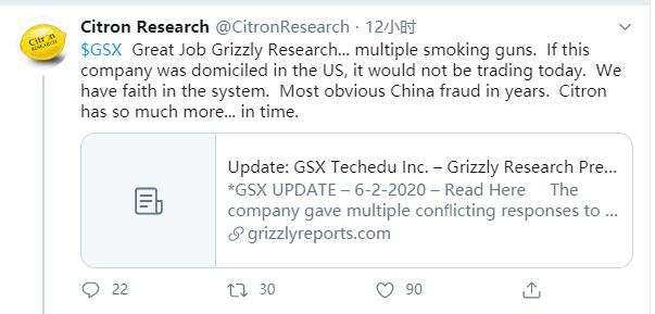 随后,另一家做空机构浑水在推特转发了该报告。香橼在Twitter上称赞了灰熊所做的工作,并表示如果跟谁学在美国注册,它今天就应该不再交易。