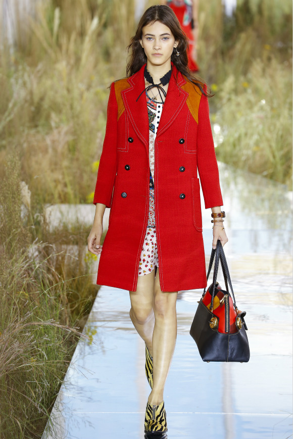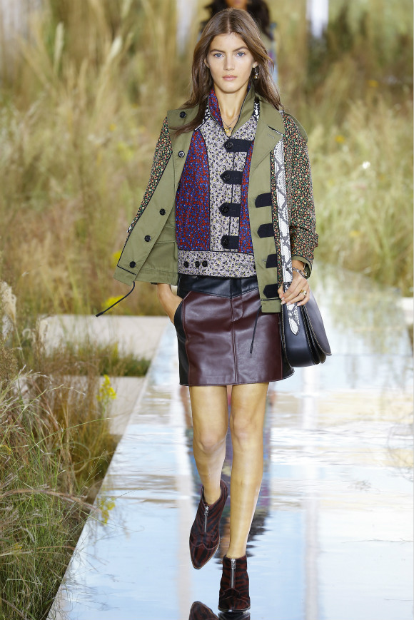 现在的情况正在发生变化。就拿今年9月在纽约时装周上发布的最新系列来说,简洁短裙,配上各色小碎花。Stuart Vevers本人热衷的皮革、羊毛等面料贯穿其中。你可以说这些女性干练十足,也能看出其中的浪漫情怀。