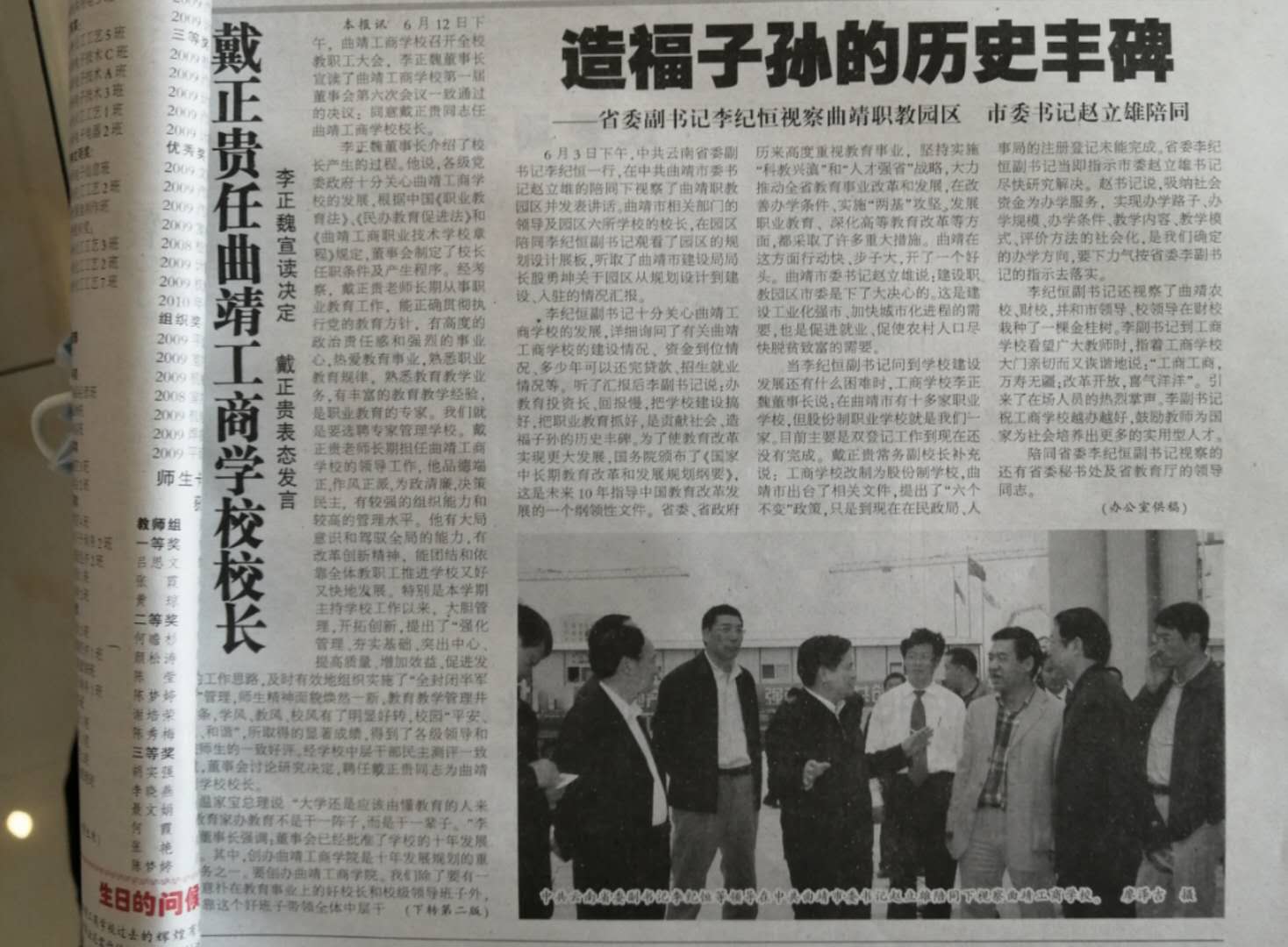 戴正贵于1992年到该校工作,曾担任常务副校长、校长等职务。他说,由于体制原因,过去工商学校校长由原曲靖市经济委员会(下称“曲靖市经委”,现已更名为曲靖市工信局)一位领导兼任,主持工作的则是全职的常务副校长。