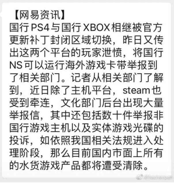 而在PS4和Xbox被暂时封区域切换的时候,国行NS和Steam平台似乎也受到了牵连。