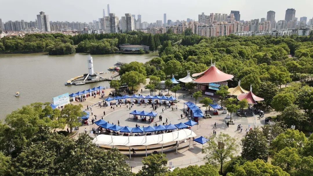 数十顶蓝色的帐篷在杨浦区黄兴公园内搭建了起来。5月20日,顶着骄阳,来自38家企事业单位前来招聘,共计520个岗位吸引了595名高校学生前来求职。
