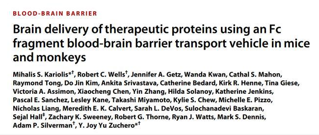 而当突变的Fc片段与运铁蛋白受体发生结合后,也就具备了被后者运输进大脑的潜力。如果再在这个Fc片段上连上大分子药物,不就能让它顺利进入大脑了吗?