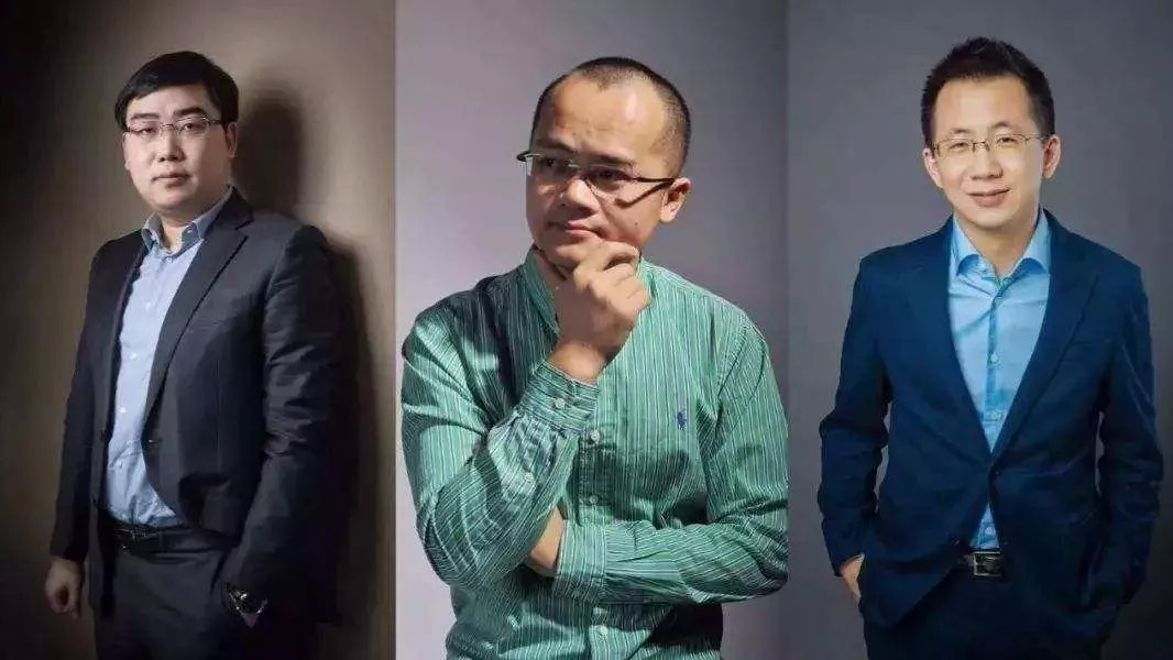 从左至右:滴滴创始人程维、美团创始人王兴、字节跳动创始人张一鸣