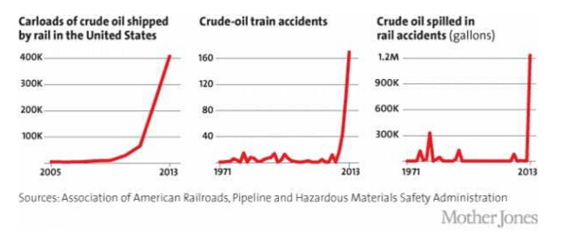 在过去8个月中,已经发生了3其BNSF公司油罐车脱轨的事故了,但至少这不会对环境造成影响,因为奥巴马最终对"危险"的Keyston管道说了不。