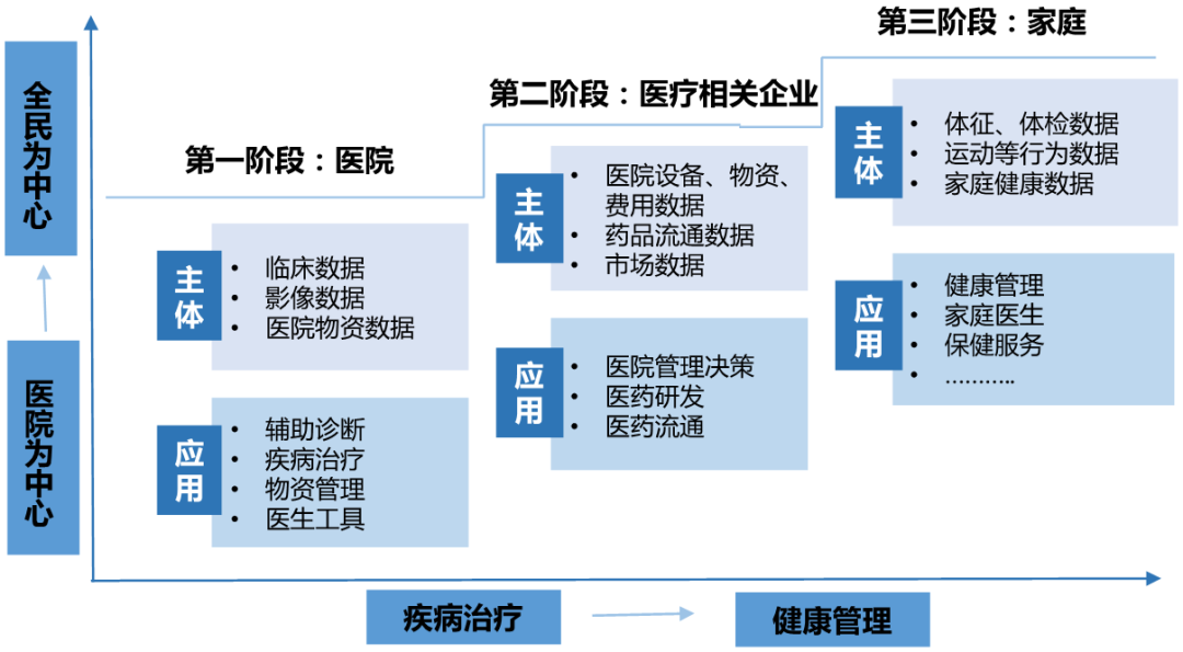 健康医疗大数据是一种记录个人的健康管理、医疗就诊等相关的行为数据,将从体系搭建、机构运作、诊断治疗、生活方式五个方面带来变革性改善,引导医院、药企、民办资本、保险等机构企业相互合作,最终实现从“治疗”到“预防”的就医习惯改变。
