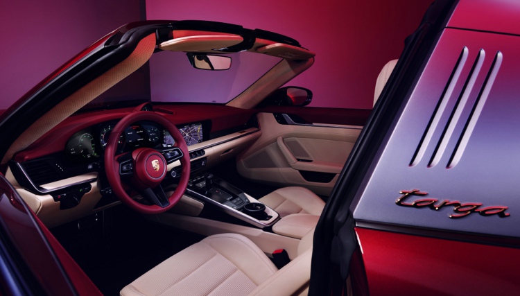 定制部门还特调了独特的樱桃红金属漆和其他四款车身颜色搭配金色标志,真实地还原了 50年代的外观风格。911 Targa 4S Heritage Design特别版的车身采用了复古的白色贴花,前翼子板上的箭头形赛车运动元素尤其吸引眼球,这也是早期保时捷赛车的元素。
