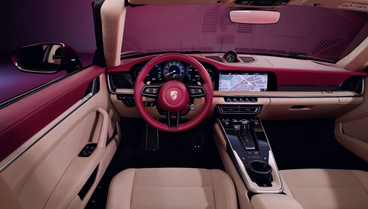 内饰同样表达了对经典的致敬,Heritage Design有两款独特的双色调真皮内饰可供选择:波尔多红色真皮搭配阿塔卡米色致新真皮,以及黑色真皮搭配阿塔卡米色致新真皮。座椅和车门饰件选用的灯芯绒曾是保时捷356的经典配置,再现了50年代的潮流时尚。经典的绿色背光转速表和计时器、超细纤维打孔车顶衬里以及丰富的Exclusive Manufaktur真皮饰件彰显了这一设计理念的魅力,同样仪表板饰板上的金属徽标上带有每台车的限量版编号。