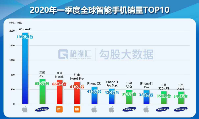 至于原因,首先可以来看看最新的全球数据,在今年一季度TOP 10畅销机型中荣耀甚至是华为都没有一款机型上榜。