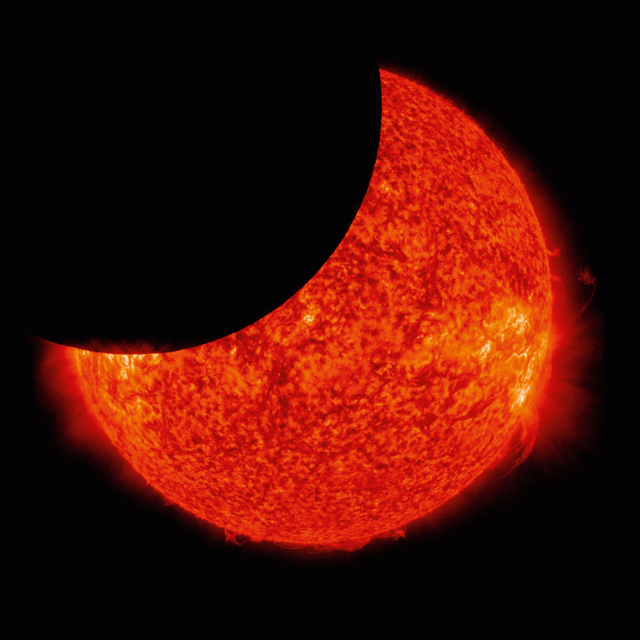 月球的轮廓十分清晰,这是因为月表没有大气层扭曲太阳耀眼的光线。对太阳动力天文台来说,能见证日蚀期间月亮的经过是十分珍贵的。当科学家通过观察月盘的黑色程度时,他们就可以测量并弥补那些使得望远镜不能更准确观测到空间动力的散射光线。最理想的情况是,月盘应该在全黑时观测,但是一下散射的光会影响望远镜的工作。