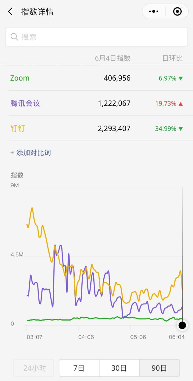 Zoom关闭了在中国的个人用户注册,基本上选择了放弃中国C端市场。但是中国市场竞争激烈,Zoom其实并不为大多数人知道,在微信指数中,Zoom的热度远远低于腾讯会议、钉钉。
