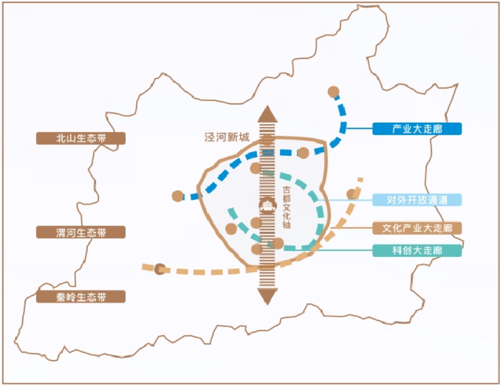 而如今,这片总面积133平方公里的地方已然发展成为集旅游业、农业、新兴工业、高端装备制造业等为一体的综合发展新城。同时担当未来大西安北跨战略核心聚集区角色,是大西安古都文化的传承轴。