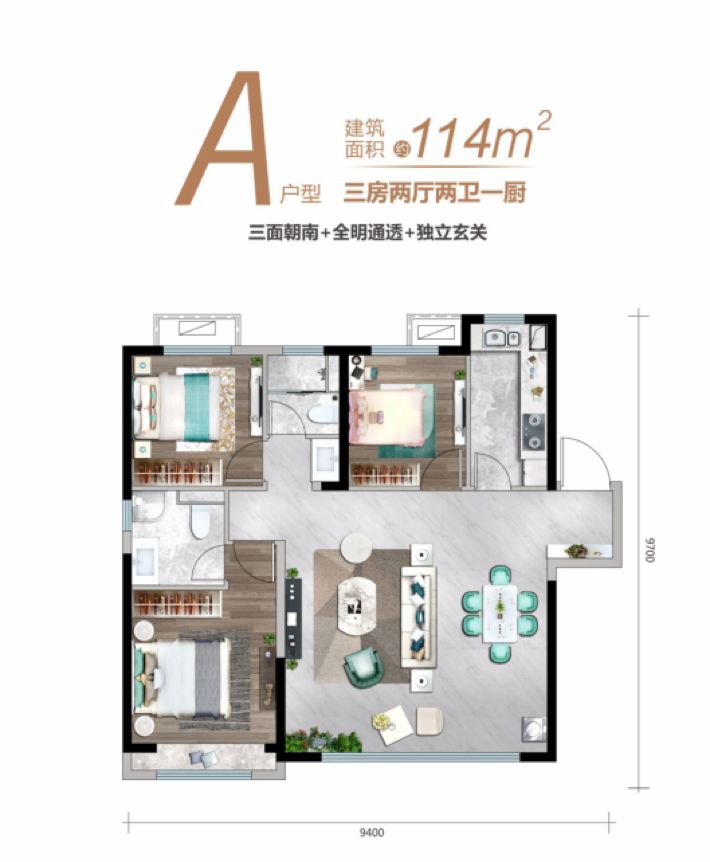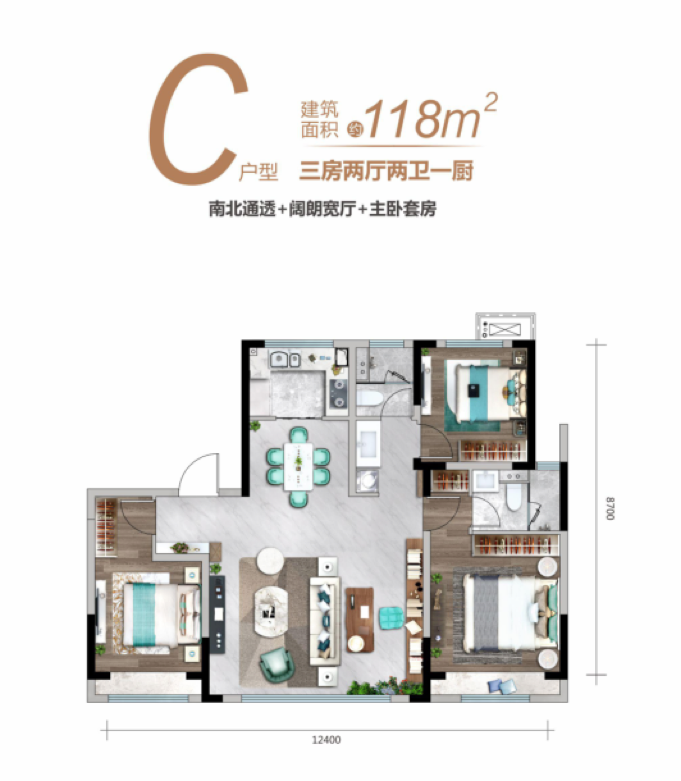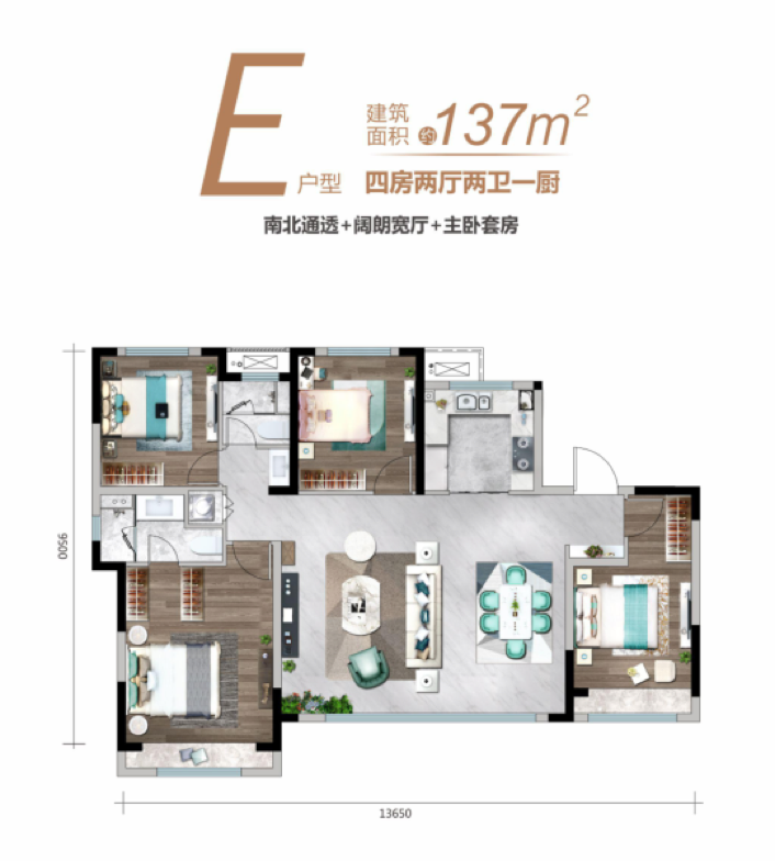 首发健康宅2.0产品、建筑面积约88—137㎡,共计6个户型,涵盖两室、三室、四室多种户型。
