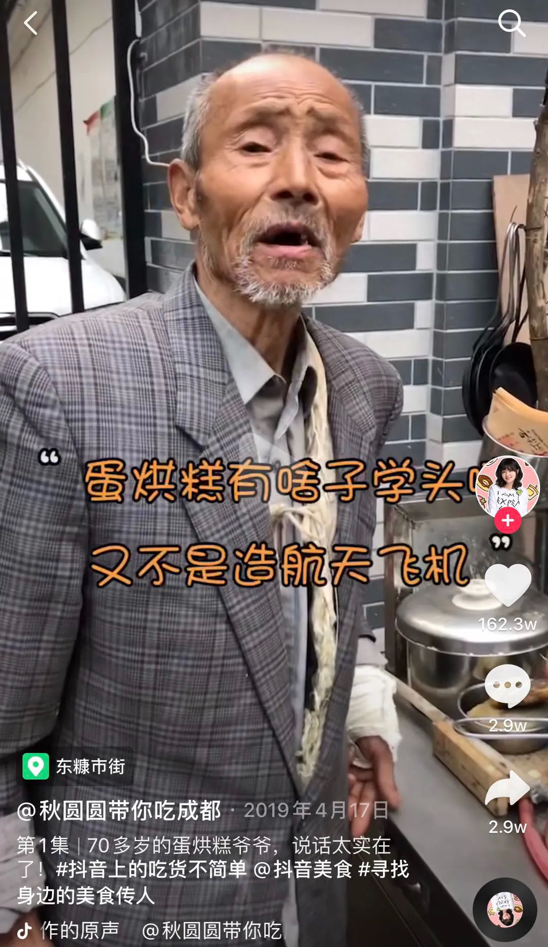 当然,也有不按套路的妖艳摊主。成都的蛋烘糕爷爷就因为净说大实话而走红。问卖了多少年蛋烘糕,答才开始卖;问原料是不是秘制的,答都是外面买的;问蛋烘糕有何奥妙,答没什么好学的,又不是造航天飞机。老老实实,引起极度舒适。