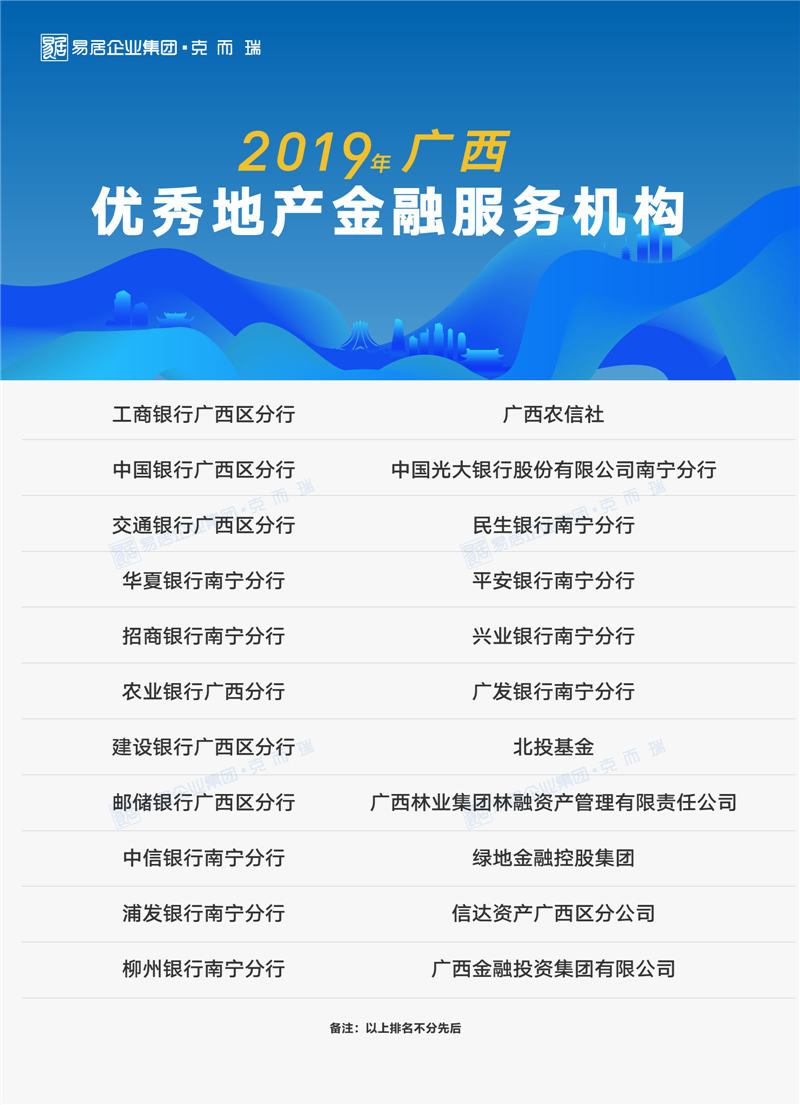 金融机构也在房地产投资领域发挥重要作用。工商银行广西区分行、中国银行广西区分行、交通银行广西区分行、华夏银行南宁分行、招商银行南宁分行等荣膺2019年广西优秀地产金融服务机构。