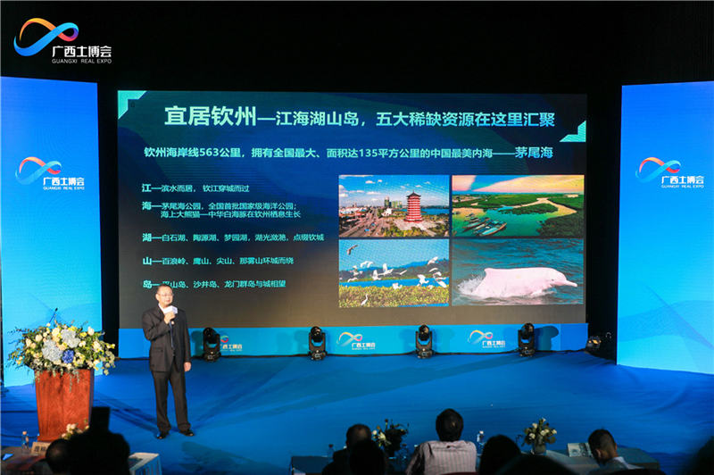 钦州市委常委、常务副市长林海波首先作钦州城市形象和土地推介。林海波介绍,钦州汇聚了江、海、湖、山、岛的“五位一体”稀缺资源,是北部湾之心,南中国海的发展机遇之一。在政策的叠加之下,由经济发展的末梢,变成发展前沿,区位优势突显。