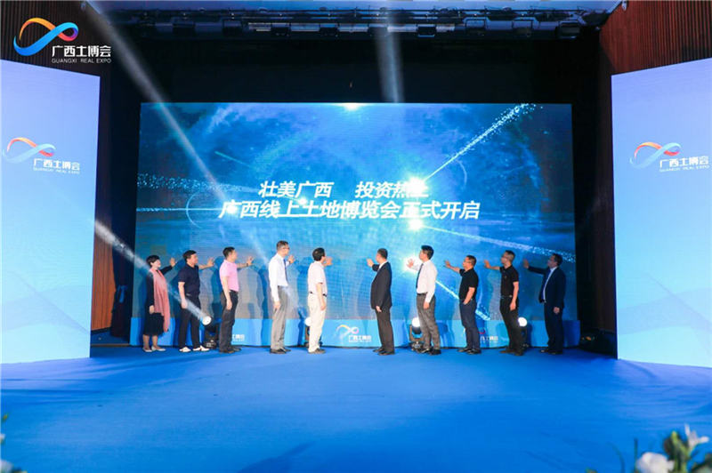 在钦州市委常委、常务副市长林海波,广西壮族自治区土地储备中心副主任李晓东,广西房地产业协会党支部书记、副秘书长梁智远,绿地金融控股集团投资四部总裁吴洋,阳光城集团广西区域总裁黄小达,广西北投地产集团有限公司董事长左皓,大唐地产广西公司执行总经理崔永杰,易居企业集团·克而瑞常务副总裁吴小华,易居企业集团·克而瑞广西区域高级合伙人吴宁,易居企业集团·克而瑞广西区域总经理黄海玲10位领导上台共启共见之下,广西线上土博会现场正式全面启动。随着广西线上土博会重磅开启,也展现了各方对于广西投资环境及前景的一致看好和认可。