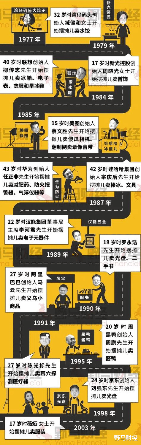 放眼历史,92一派诞生了许多房地产和实业大佬;99一派则诞生了众多互联网门户和IT大佬。审时度势,找准时机,是从摆摊人进阶成功企业家的关键一步。