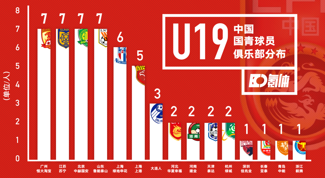 来看下氪体的这份U19国青球员俱乐部分布的统计,我想你会对数据有更直观的认识——