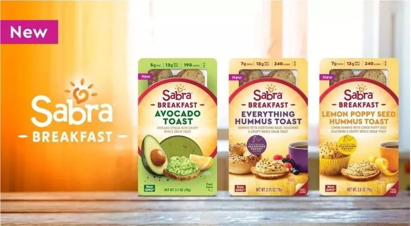 除了米饭和意面,鹰嘴豆泥吐司也成为主食的新选择。百事与Strauss集团合资成立的Sabra Dipping公司,为了扩大其便携式早餐产品系列,推出两款口味的鹰嘴豆泥吐司:满满鹰嘴豆泥吐司和柠檬罂粟籽鹰嘴豆泥吐司。两款产品都含有7g蛋白质,5克纤维和13克全谷物,并提供240卡路里的热量。