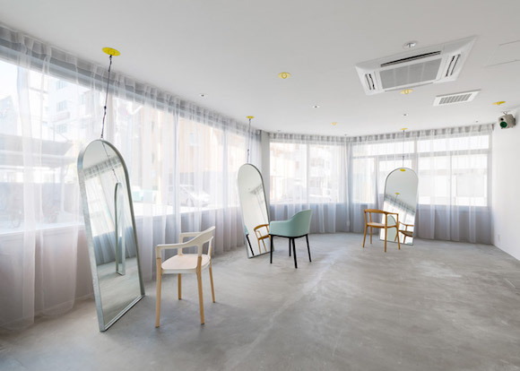 这家店里所有的镜子都用一根线悬挂在天花板上,你眼里几乎看不到多余的设备。