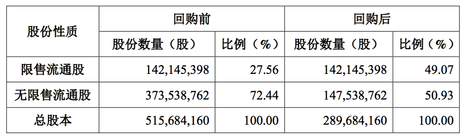 若按上限数量2.26亿股回购并注册,好想你此次回购股份完成后,公司股权变动情况如下: