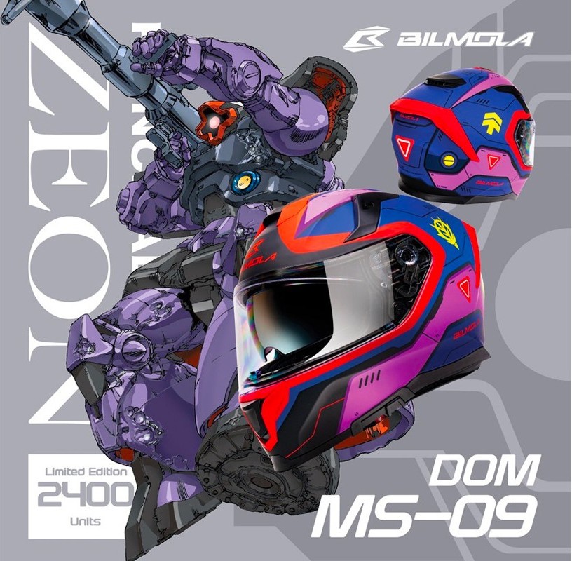 而与泰国头盔品牌Bilmola的联名则是《机动战士高达》在今年最接近动画本质的合作。三款头盔分别以RX-78-2 GUNDAM、MS-09 DOM和MS-06S CHAR’S ZAKU三个角色为主题,用蓝白色、紫色和红色来呼应动画中的角色。