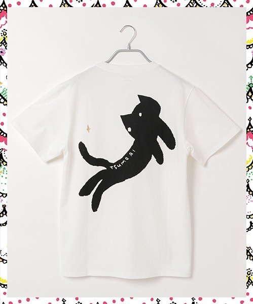 印花T恤衫也是这一系列中值得关注的部分。津森千里将简洁的猫咪剪影以不同色彩呈现在T恤上,流动的线条勾勒了猫科动物活跃的动作形态。实用的2WAY托特包系列则选择了手绘印花、猫咪剪影和彩色喷绘墨点来装饰,好看又实用。