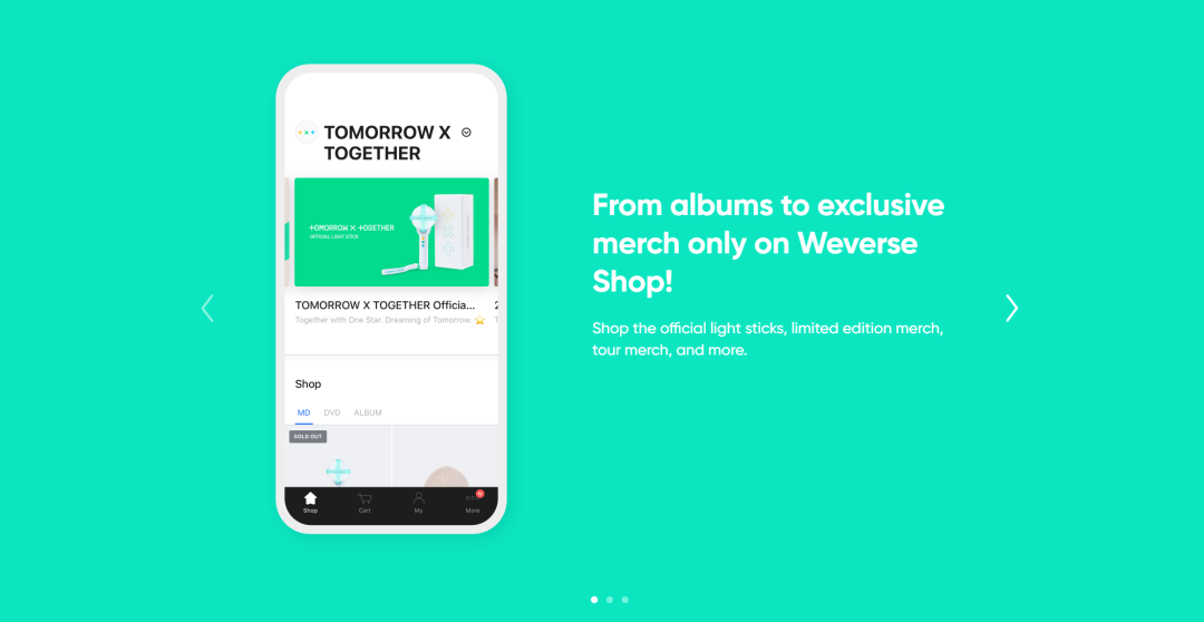 其中,在平台化与数字化发展方向的布局,是Big Hit娱乐公司跟传统经纪公司较为显著的区别所在。早在2018年7月,Big Hit就成立了科技公司beNX,基于自有开发平台,陆续推出了粉丝互动平台Weverse、支持海外购的线上商城Weply等应用,以构建全球化的社区平台和商务服务平台。据《福布斯》报道,截止2020年5月, Weverse在全球范围内已经积累了700万用户。