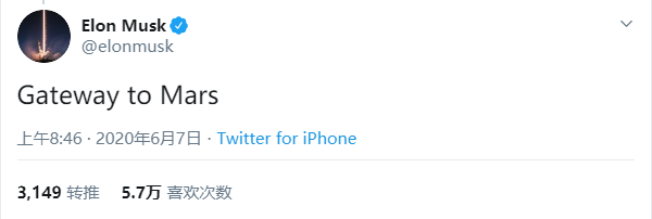 正如马斯克最新一条Twitter所说:通往火星的大门已经开启。