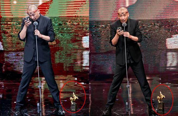 台湾金马奖颁奖典礼中,某中国导演将奖杯直接放在地上,引发台湾媒体怒喷“不懂礼仪”