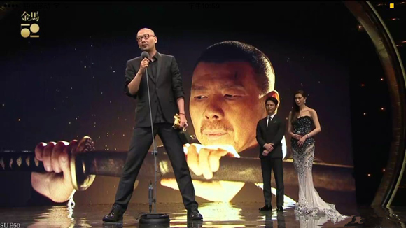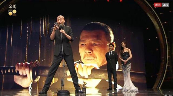 在21日召开的颁奖典礼中,中国电影《老炮儿》(Mr. Six)荣获最佳男主角奖项。在这部电影中,男主角是由最受欢迎制作人冯小刚导演饰演的,但由于无法出席颁奖典礼,而由管虎导演上台领奖。这时,站在颁奖台上的管导演为了将冯导演发来的信息念给大家听,从口袋中掏出了手机,然后将奖杯放在了舞台上。此举受到了众人的责难。