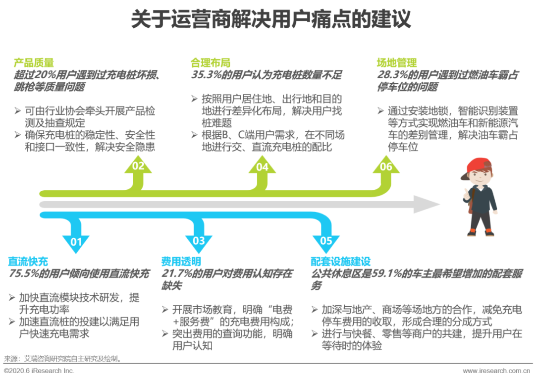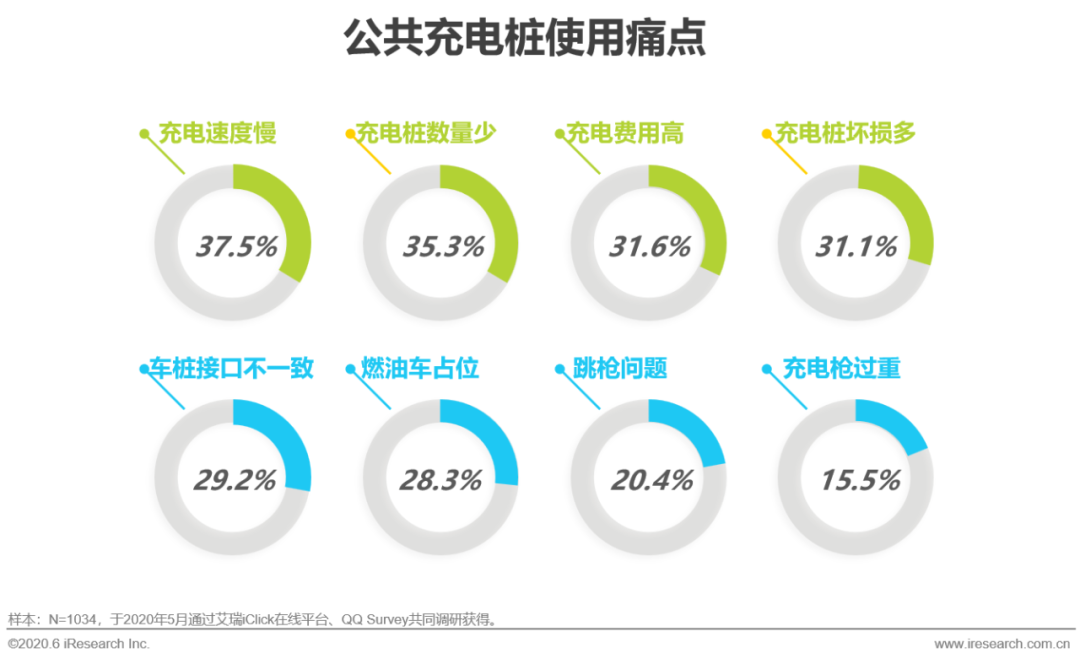 产品质量、技术制约、前期运营和社会因素等多种因素共同导致了多种用户实际使用充电桩时的不便。充电速度慢、充电桩数量少和费用高同时加大了车主用车的隐形成本,成为公共充电桩用户的三大痛点。而由于新国标的出台和运营商对于产品质量的把控愈加严格,充电桩跳枪及枪头过重的问题得到部分改善。