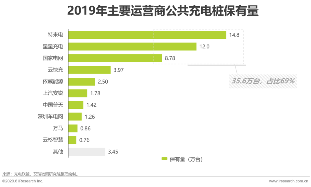 截至2019年,充电桩保有量超过8万台的运营商有三家,保有量达35.6万台,占比69%。行业集中度较高,头部企业优势显著。同时地方性小企业充电桩数量也在稳定增长,目前已经形成以头部企业为主,小型企业为辅的局面。然而目前充电桩行业处于初期向中期过渡的环节,并且充电桩数量仍未达到国家目标,因此行业格局并未完全形成定论。
