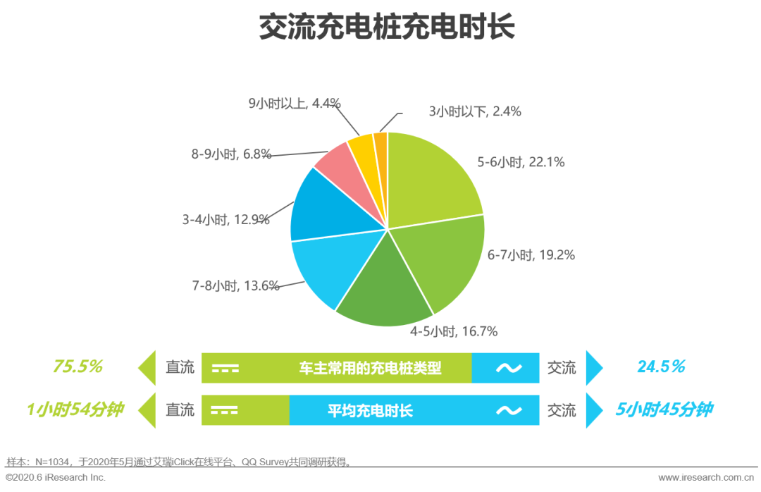 直流充电桩由于充电速度快成为了75.5%用户的首选,85%的用户可以在2.5小时内结束充电,其平均充电时长为1小时54分钟。而交流充电桩则需要较长充电时间,66.2%的用户需要5小时以上的充电时间,平均充电时长5小时45分钟。将近4小时充电时间的差距直接决定了车主明显的使用偏向。