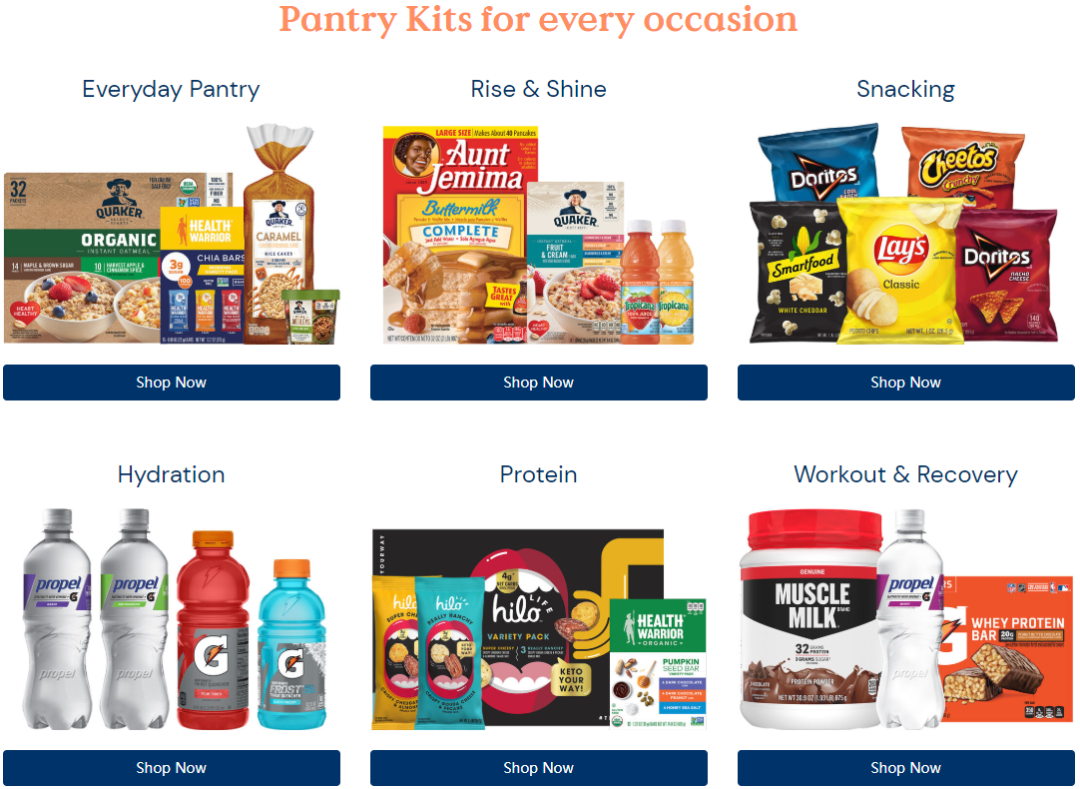 从网站界面可以清晰地看出,PantryShop的产品系列针对的诉求包括早餐、休闲时刻、运动、工作等。