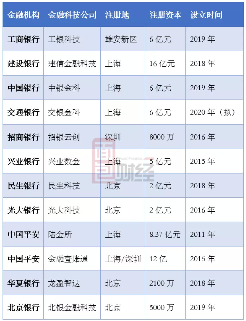 需要特别留意的是,截止2020年5月,六大国有商业银行中,有四家设立了金融科技子公司,其中三家都选择了落户上海,分别是建设银行、中国银行和交通银行。