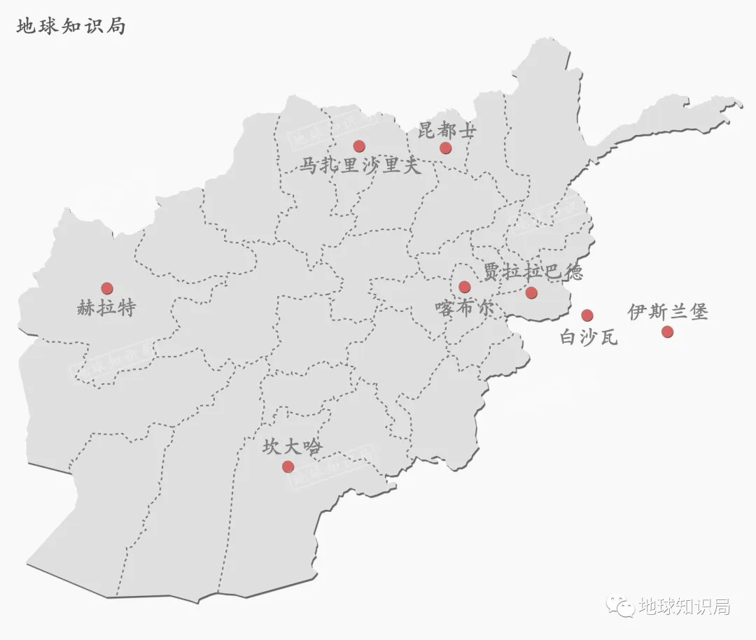 然而如果看下塔利班在阿富汗的势力分布(红色)