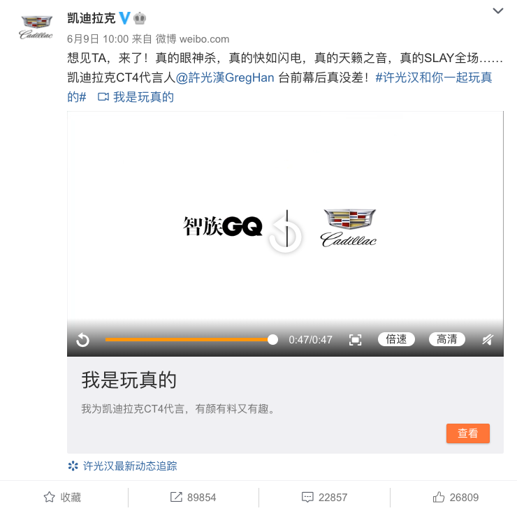 6月9日,这位外表阳光帅气的男演员,正式成为美国高档汽车品牌凯迪拉克旗下后驱轿车CT4的车型代言人。凯迪拉克通过微博官宣了这一消息,并配文:“台前幕后真没差”和“许光汉和你一起玩真的”。