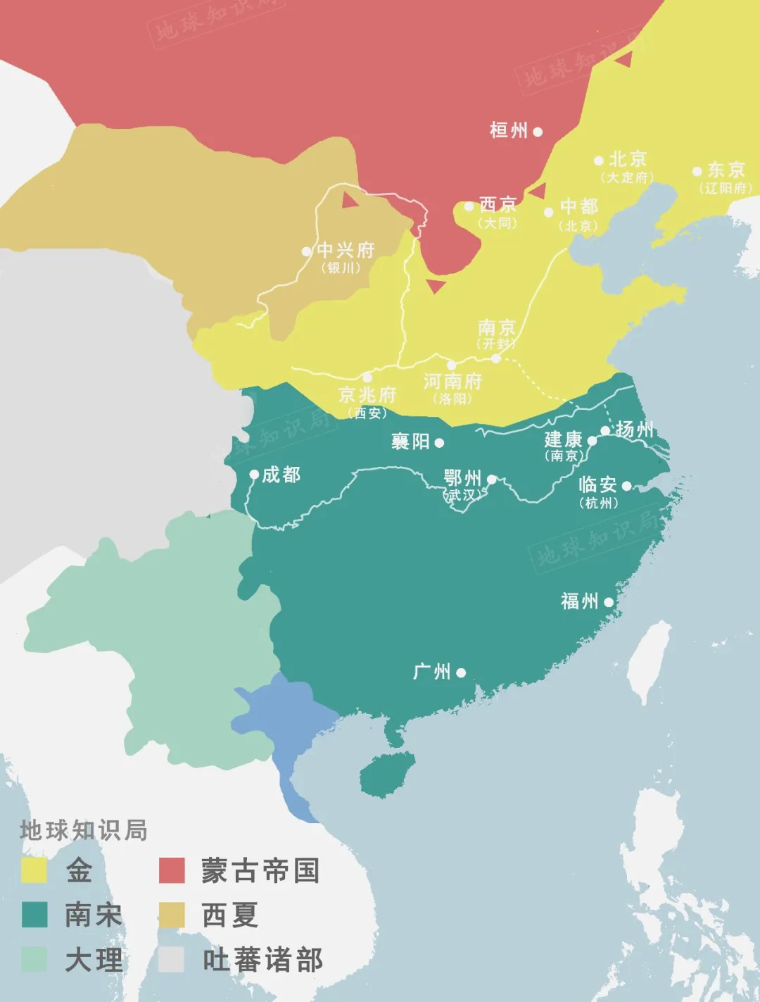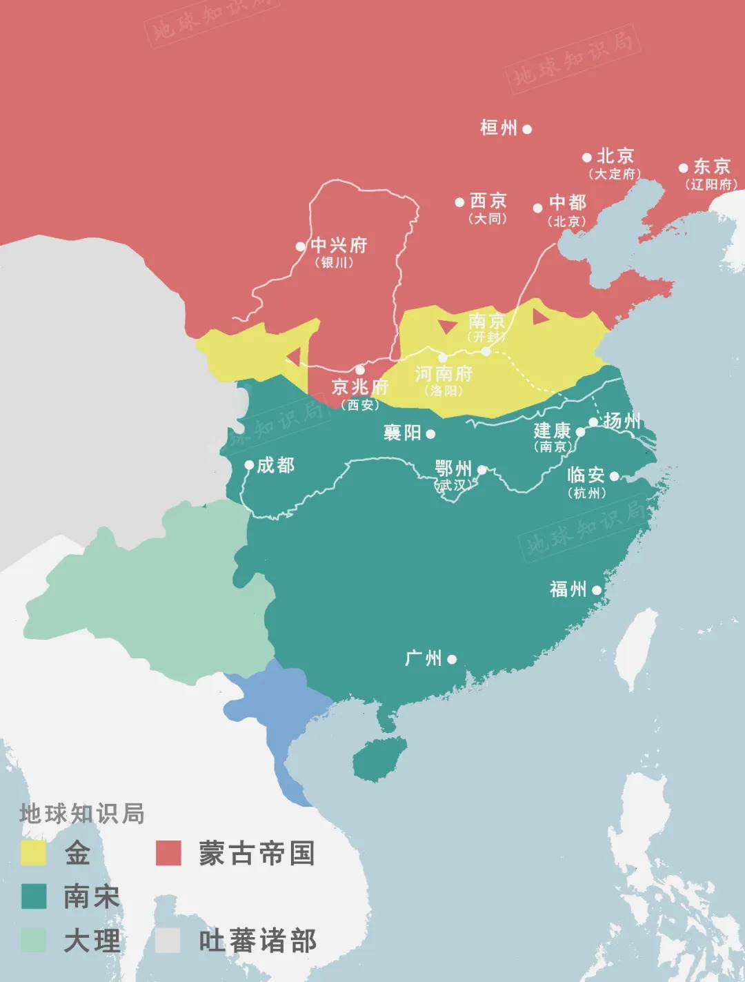 在宋朝以北立国的辽,其北方逐渐又产生了一支草原力量——金。历史又一次重新演绎,辽金战争结束以后,金取代了之前的辽,而在金的北方,逐渐又形成了另一支北方草原力量——蒙古。