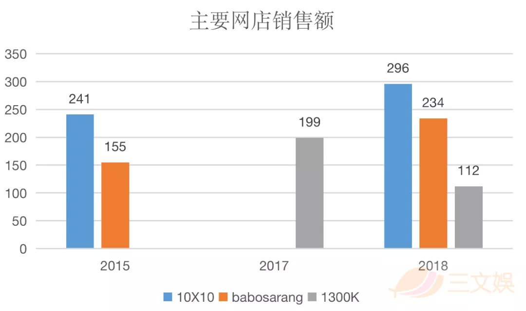 10X10店2015年的销售额为241亿韩元(≈1.41亿元),到了2018年销售额达到了296亿韩元(≈1.73亿元)。